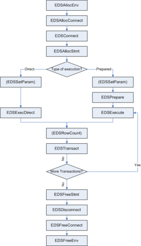 Figure 2-2 below illustrates the sequence of EDS commands used to modify the database with an INSERT, UPDATE or DELETE command. (Optional commands are in brackets).