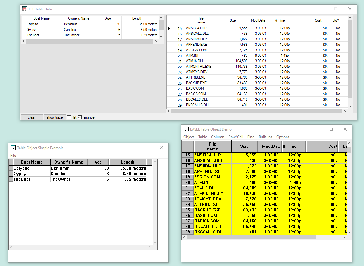 In the screen shot of an example, below, a vb.net program dynamically populates a data grid view for each Esl Table that appears or changes.