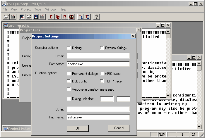 4.Press the OK push button in the Project Settings dialog box, and also in the Project Files dialog box.