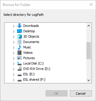 Navigate to the required directory. Once a directory is selected the "OK" button will be enabled.