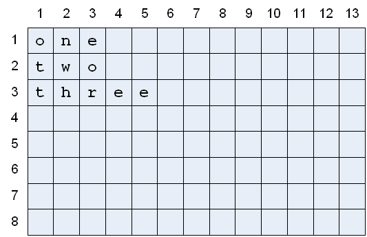 and the destination textual region, NewTxt, contains the following text, with the text cursor at column 1 line 1 as shown: